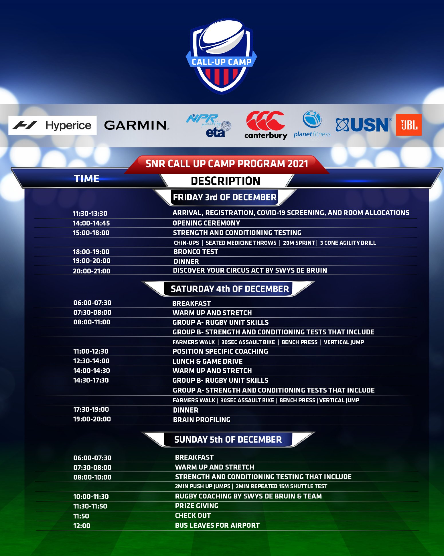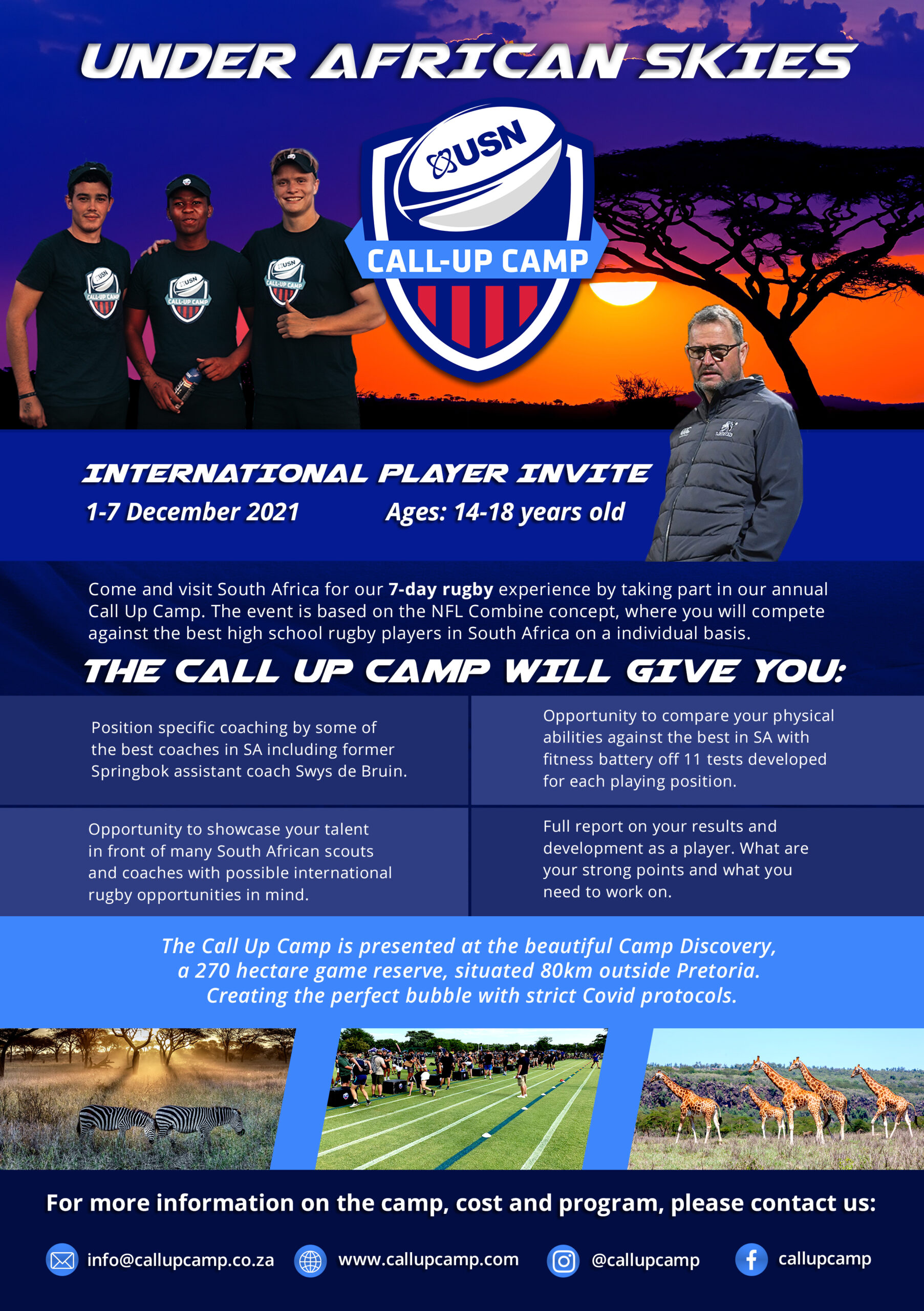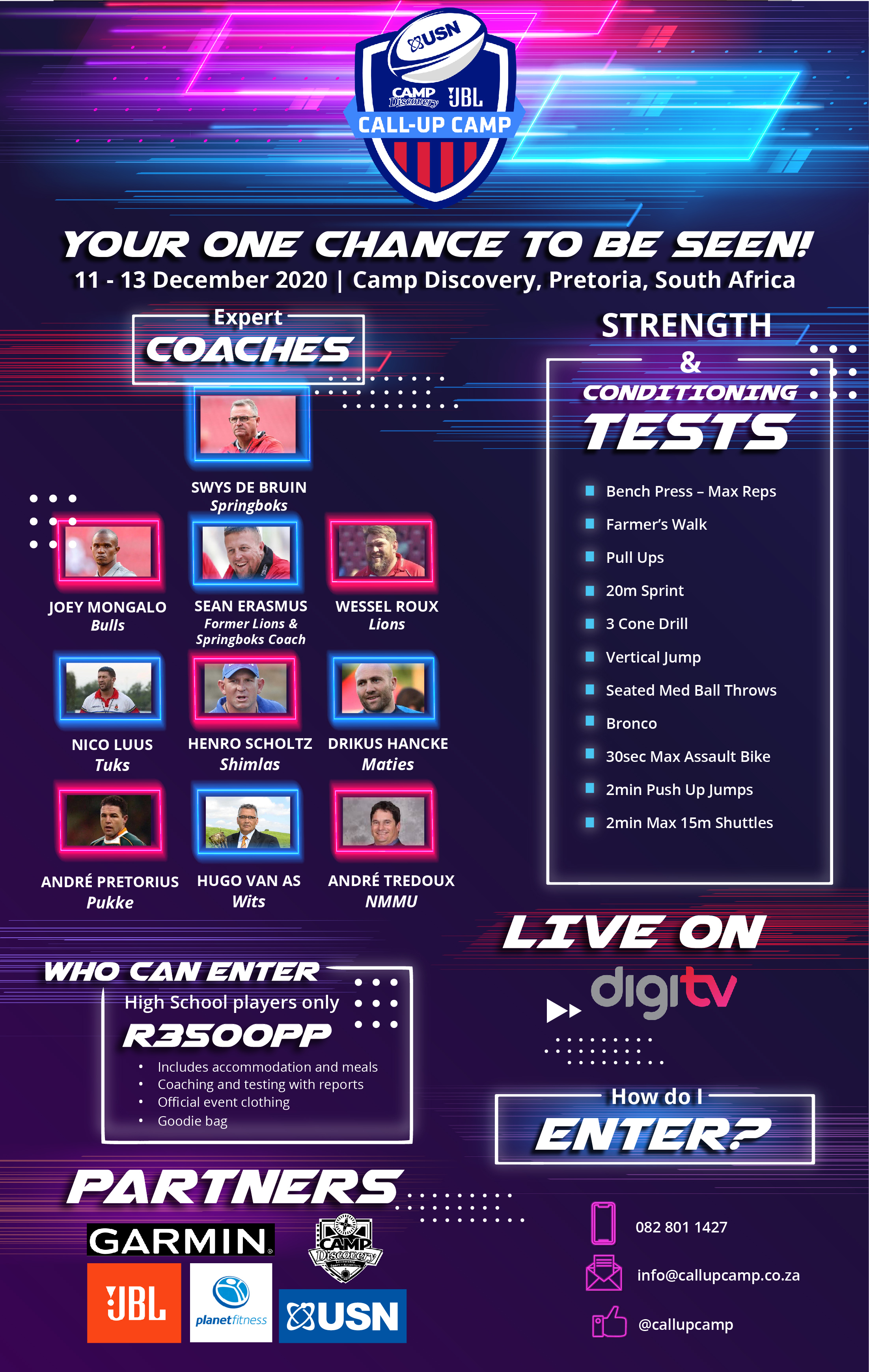 Call up camp is a big event for all high school rugby boys and at this event there is always something very powerful to it’s branding and what they can offer to the boys that is participating in this event. There is huge prices up for grabs and players get the best coaches in South Africa to expose their talents to.