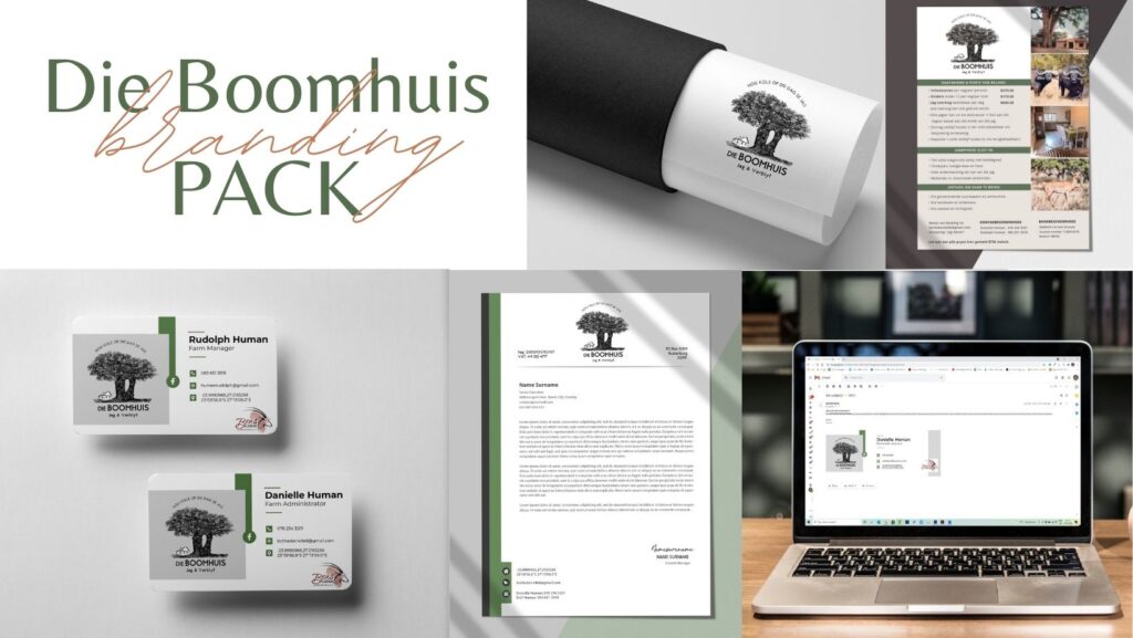 I started a journey with Danielle and Dolf when they asked me to come take photos of this tree and the lovely accommodation they build for hunters and families to enjoy anytime of the year. I started by taking photos of the tree to make it the main attraction and then to advertise the house where guests could stay. The branding came out absolutely magnificent and quickly became a banding package everyone fell in love with. Pricelists, rules, logo, email signatures, letterhead and business cards.
