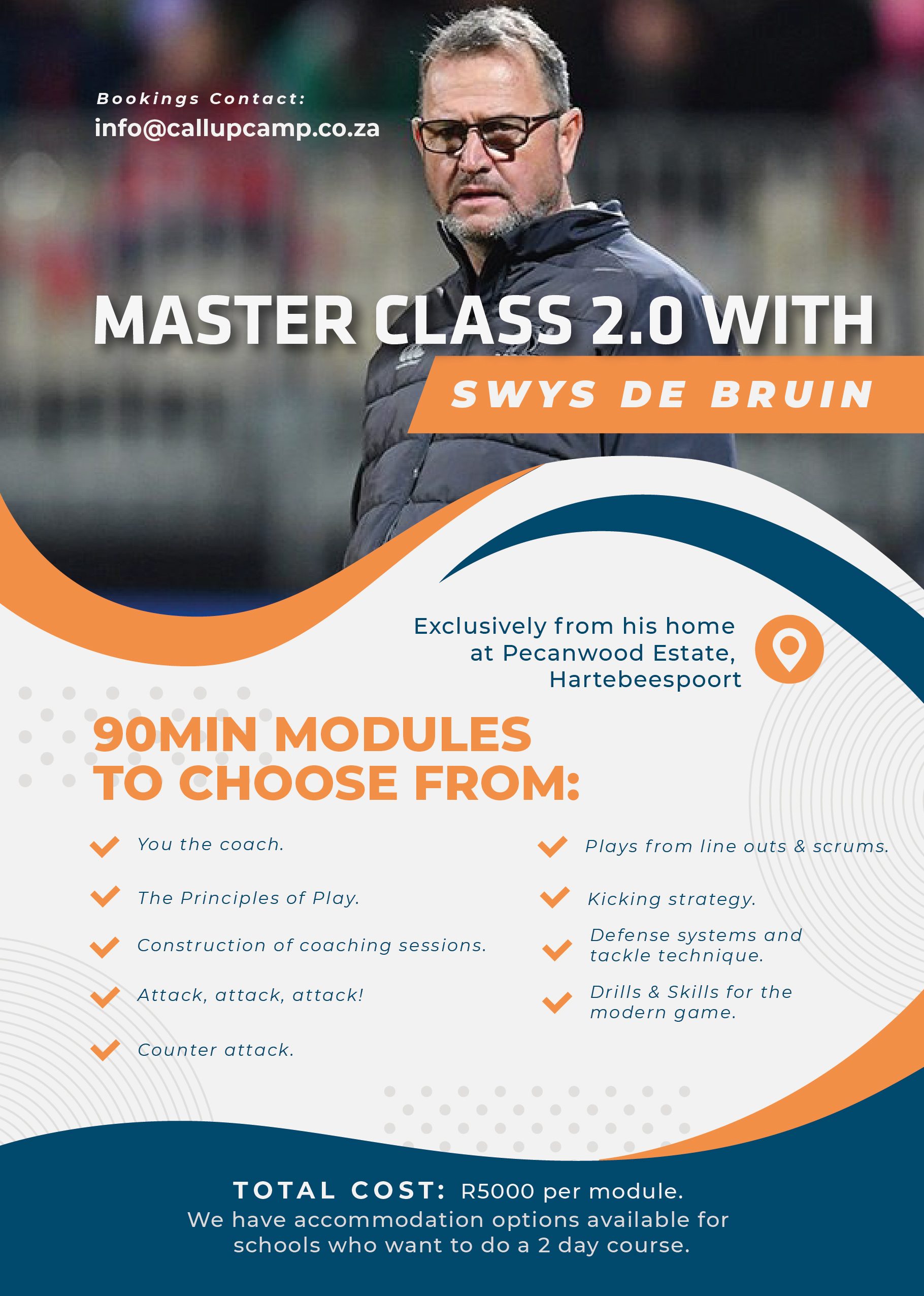I designed a flyer for a very famous rugby coach in our country that wants exposure for others to learn some tack ticks out of his experience over the years. These classes and modules are very professionally put together for others to gain great education.