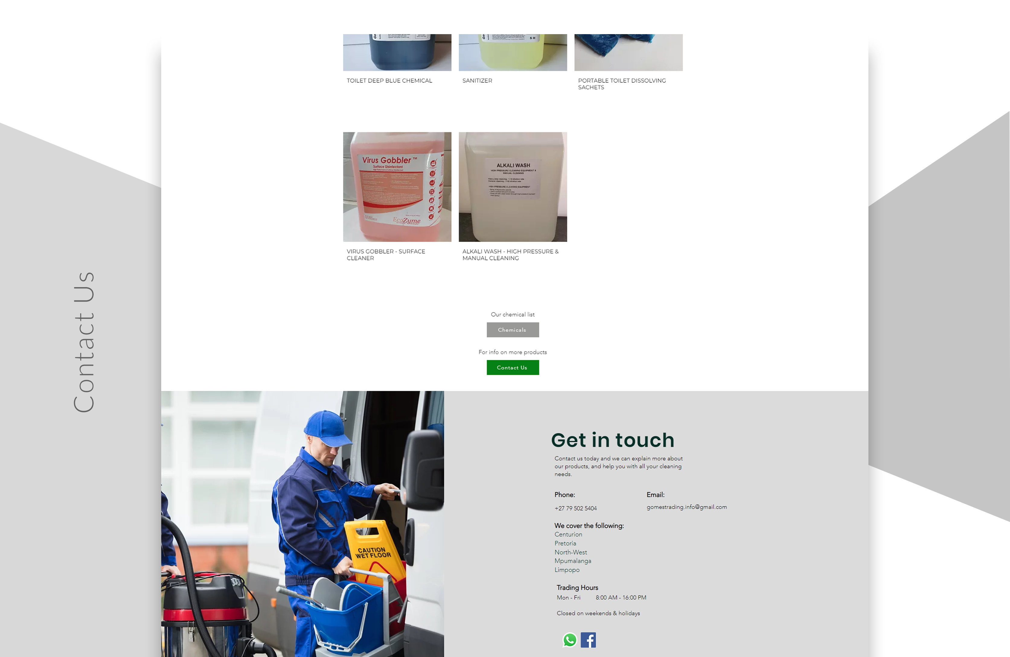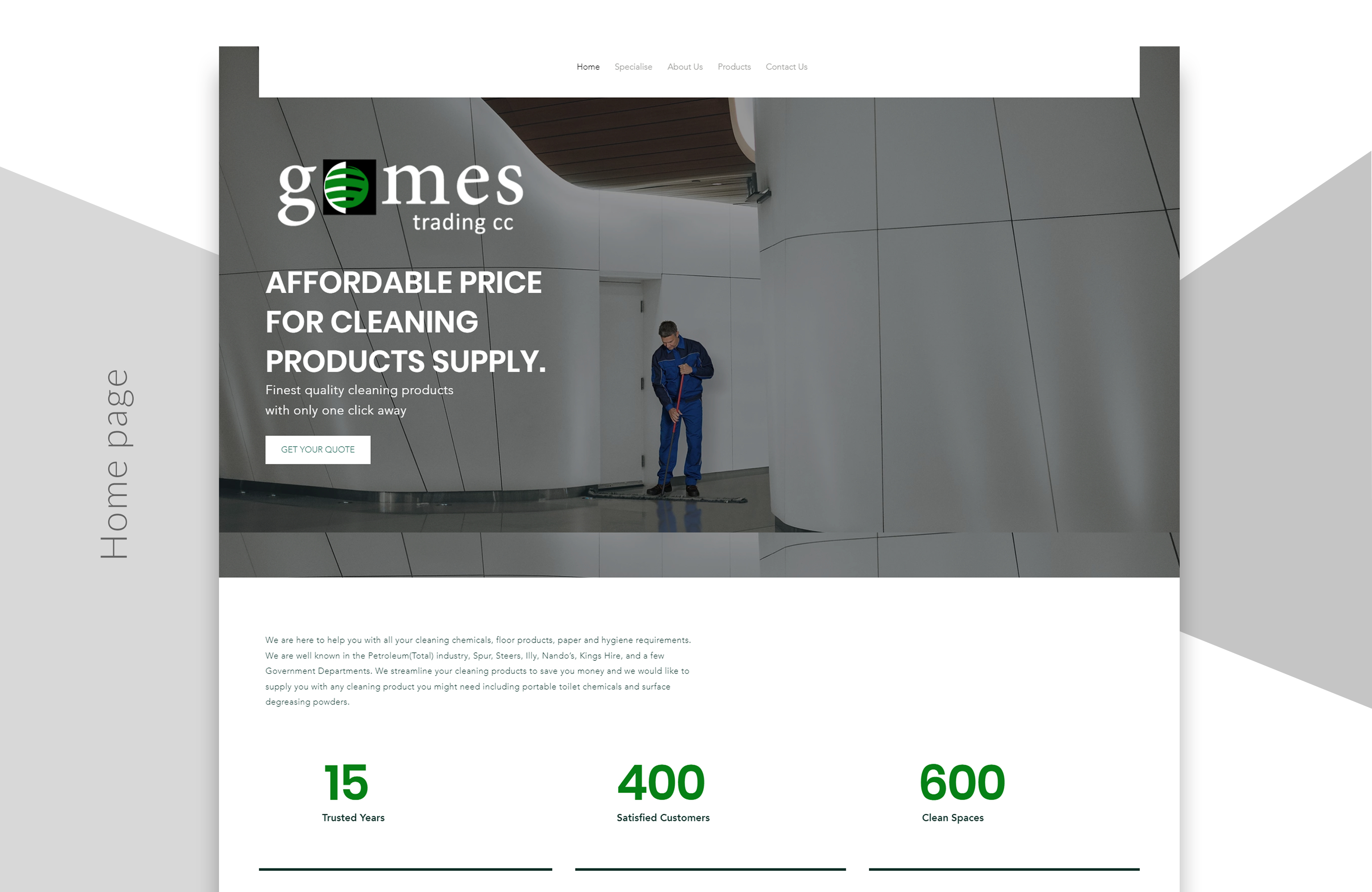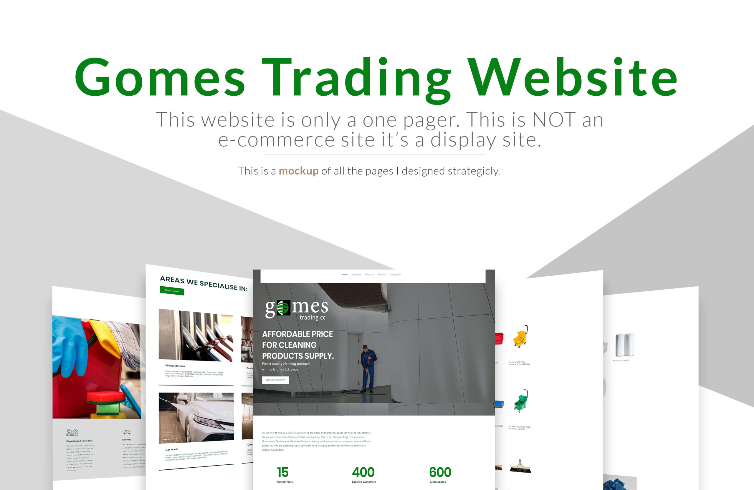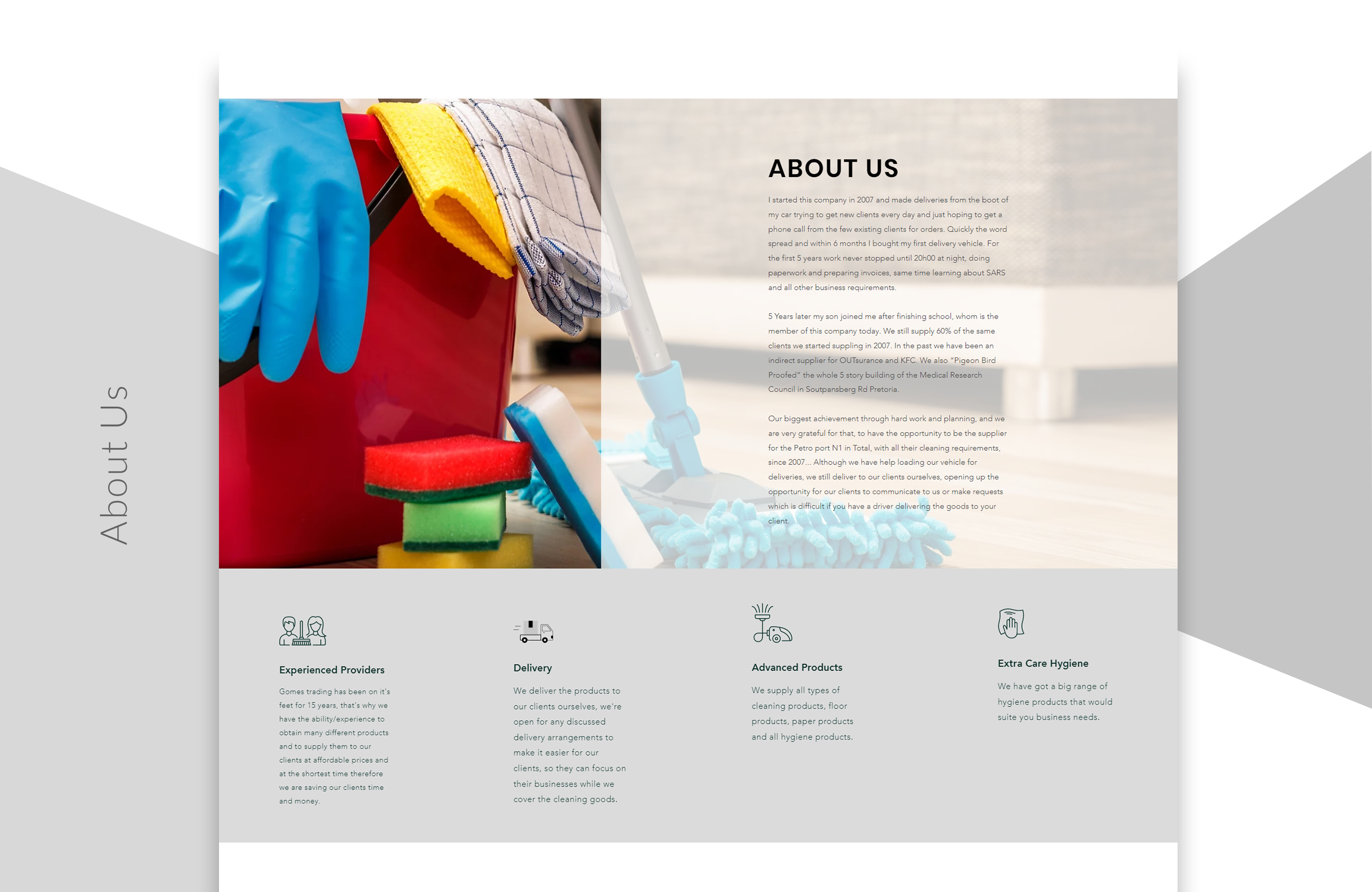 Gomes Trading help their costumers with all your cleaning chemicals, floor products, paper and hygiene requirements. They are wholesale suppliers to any industry big or small, they have a large range of products to offer to their clients. My responsibility was to work out a strategy according to my research in the cleaning supply industry, on how to showcase products with the sole purpose of not selling them online. I worked on the UX and UI on this project with the design purpose of being clean and simplistic to give a sense of cleaning vision for the client experience. The website holds consistency in image and visuals are designed accordingly.