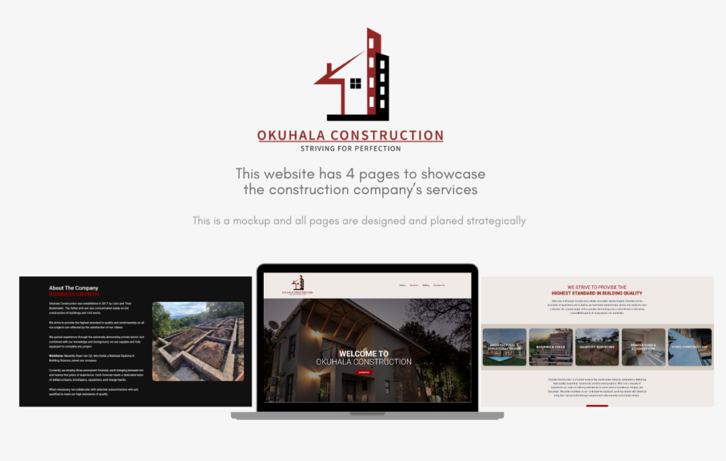 The newly designed website for Okuhala Construction Company features a sleek, modern layout that effectively highlights the company's extensive portfolio and services. The site includes intuitive navigation, high-quality project galleries, and detailed service descriptions, ensuring visitors can easily find the information they need. Enhanced with responsive design, the website provides an optimal viewing experience across all devices, reinforcing Okuhala Construction's commitment to quality and professionalism in every aspect of their business.